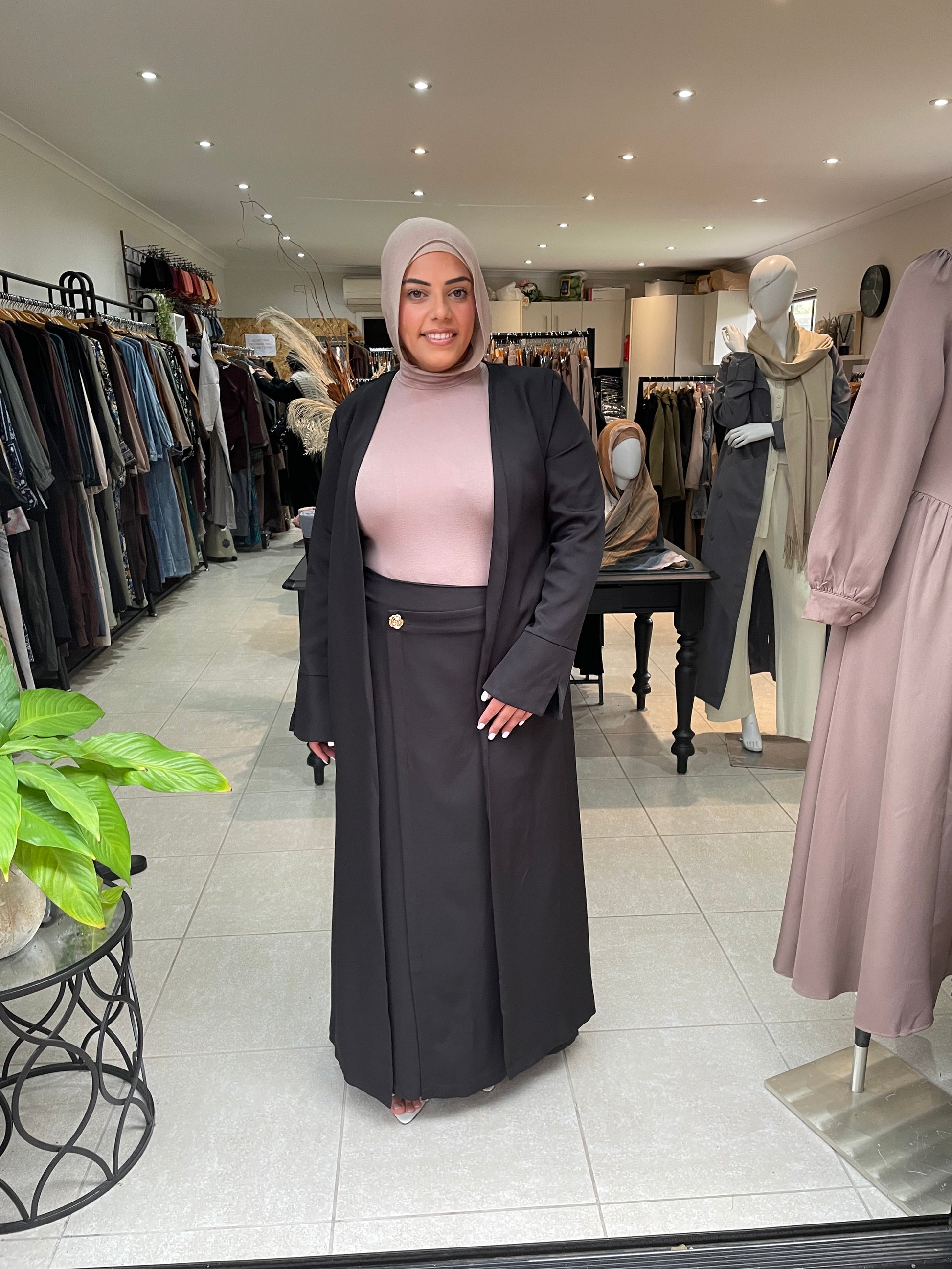 Chic and sophisticated, the Rouba set is sure to impress when we’re you go. Team it up with a body suit and a hijab of your choice. Wear it with heels or boots.